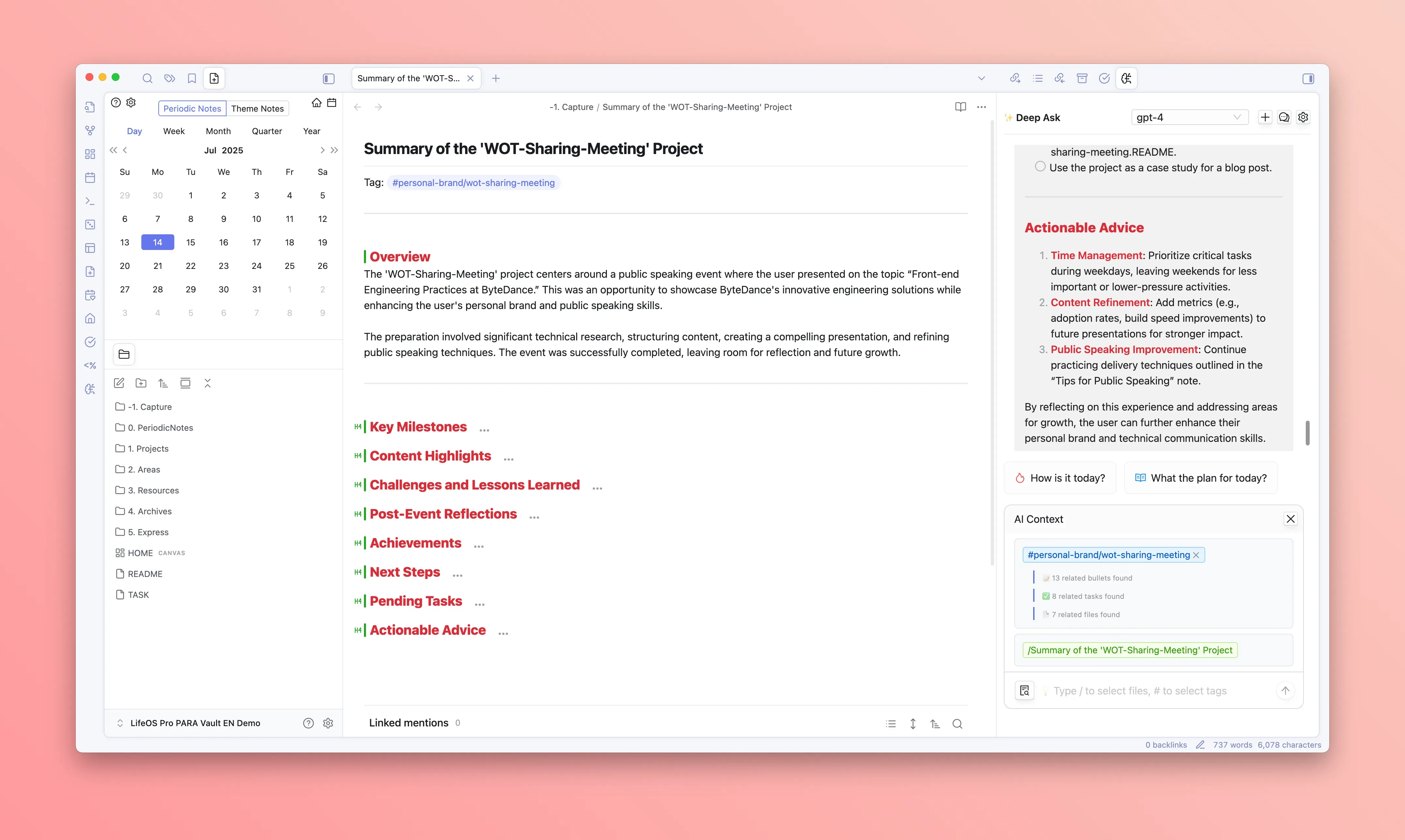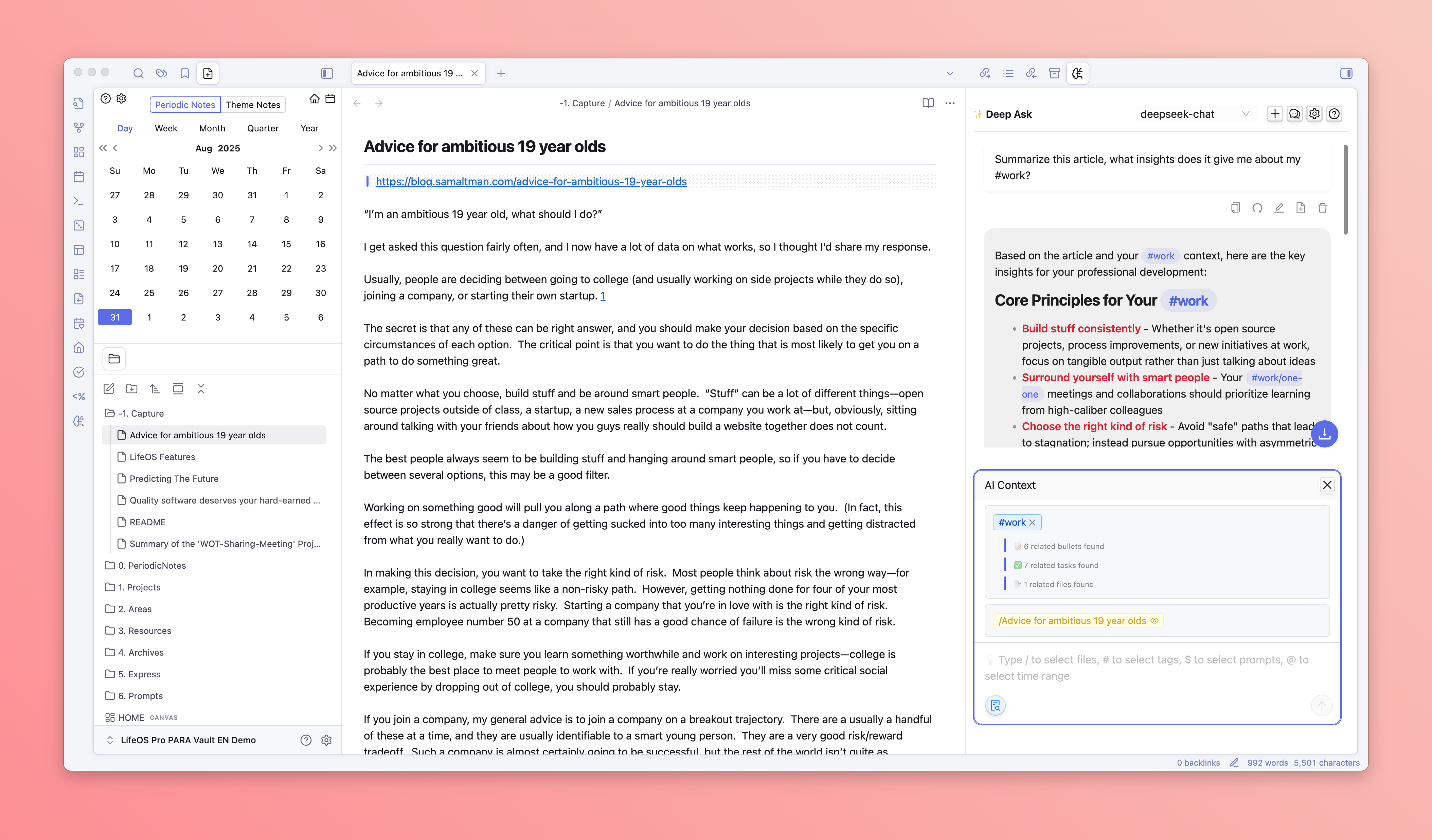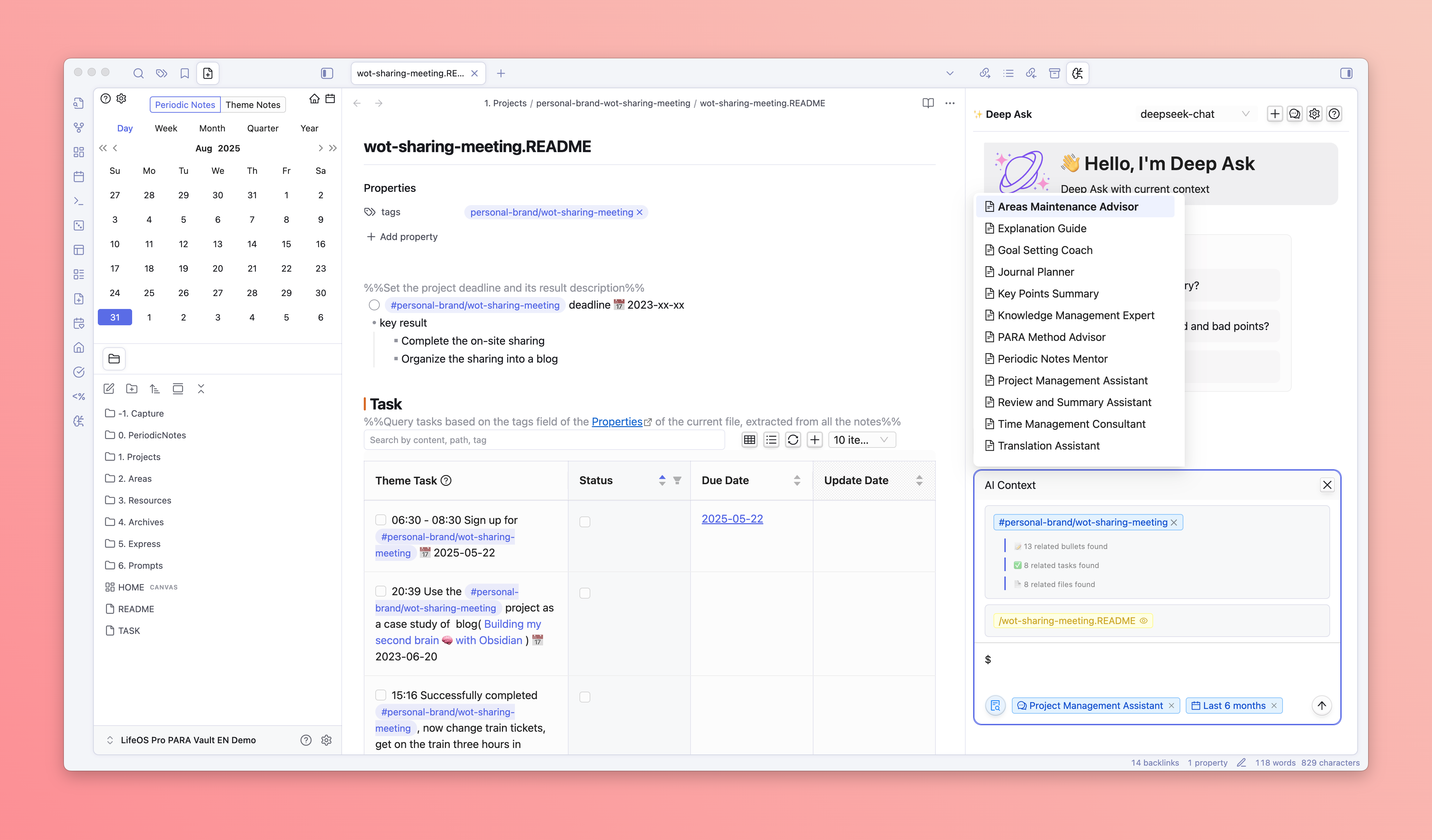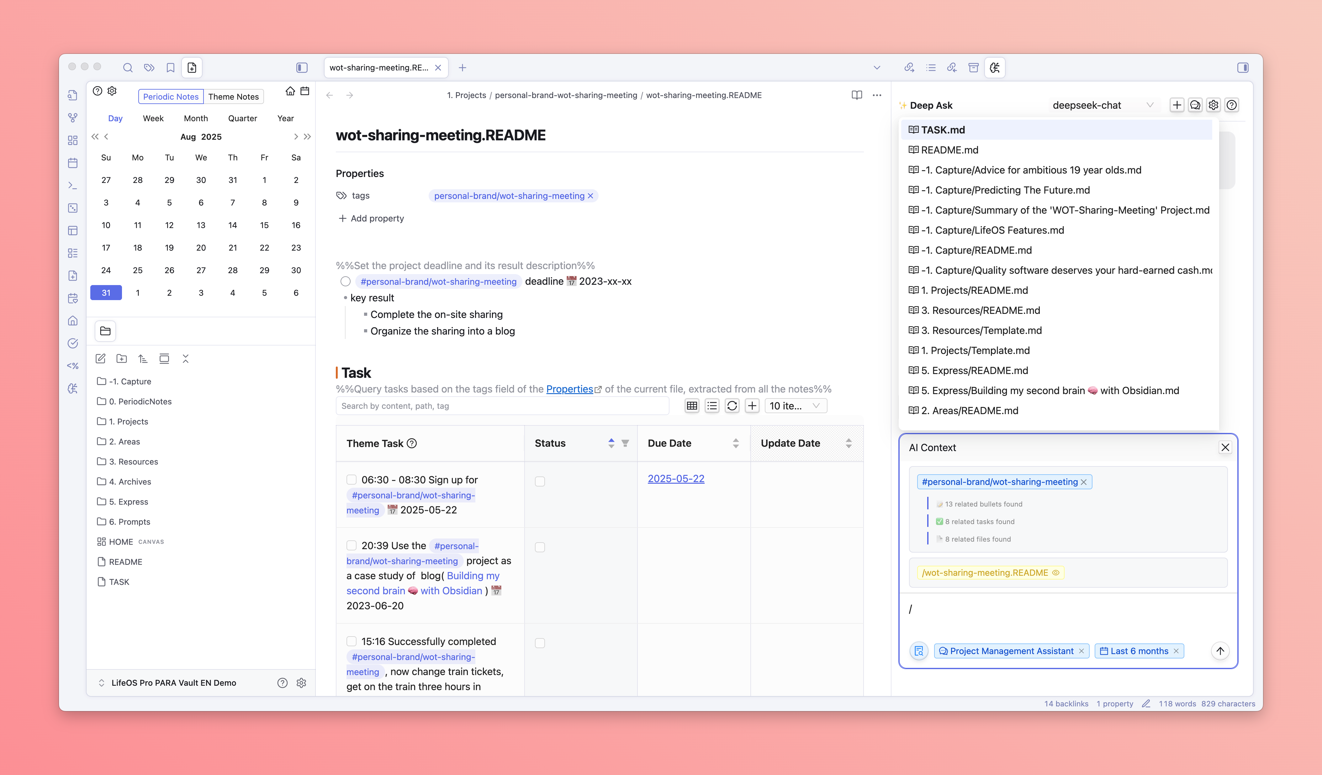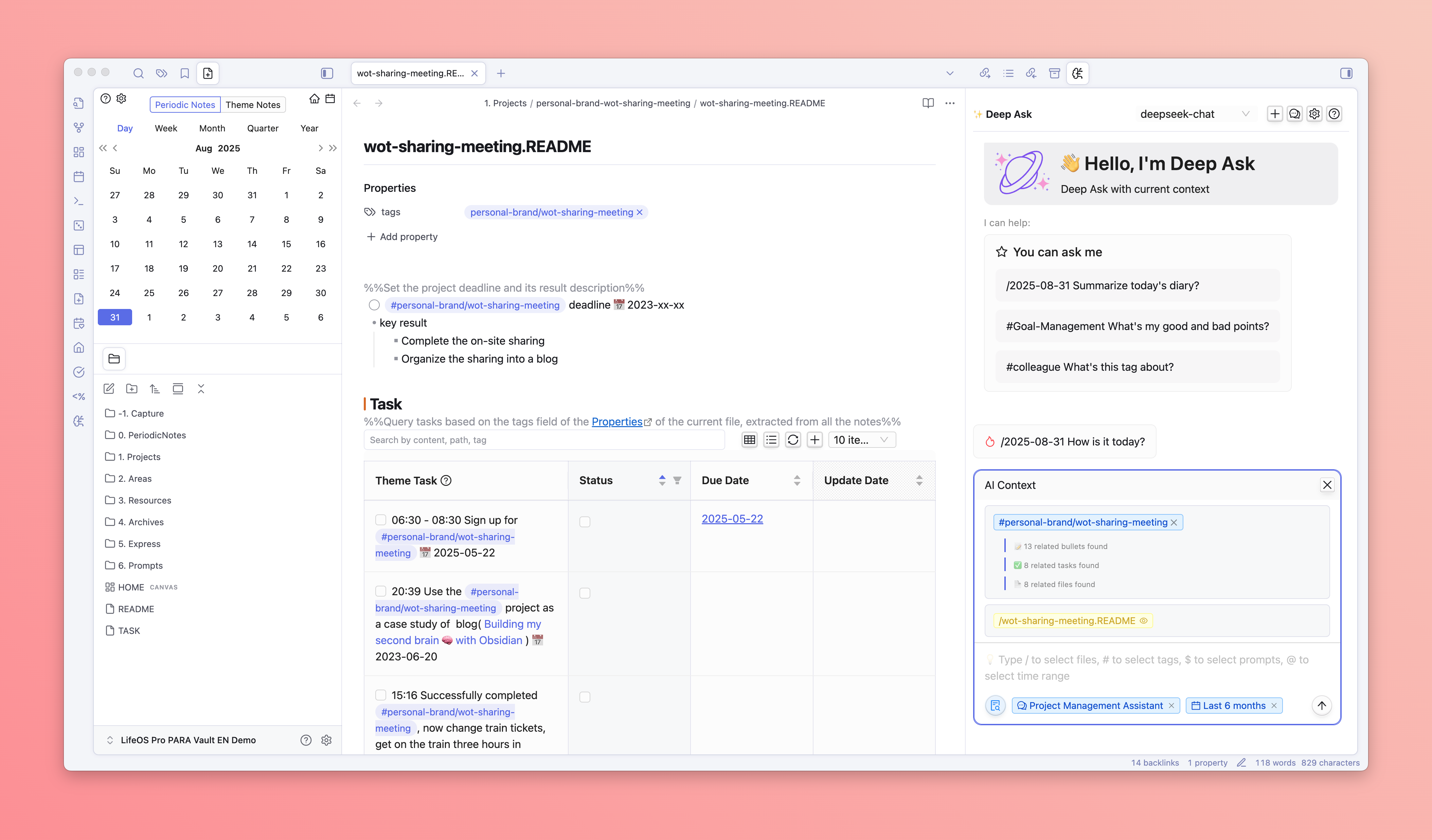- DeepAsk will automatically search for all records in the vault, including tasks, flash notes, and files with the selected tag