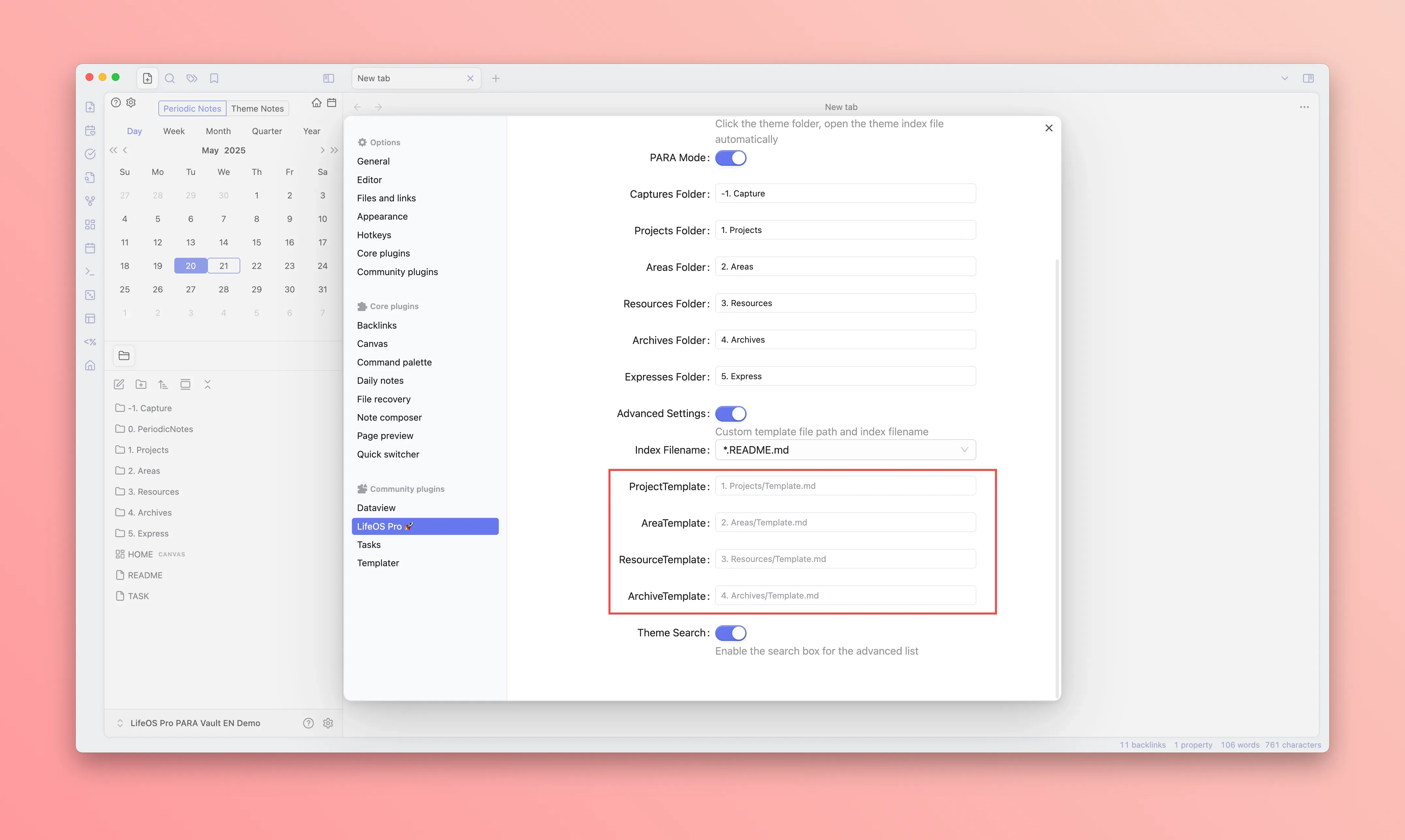 Refer to the image below, configure your template files for theme notes. Each time you create a theme note, it will use the corresponding template to create a new note