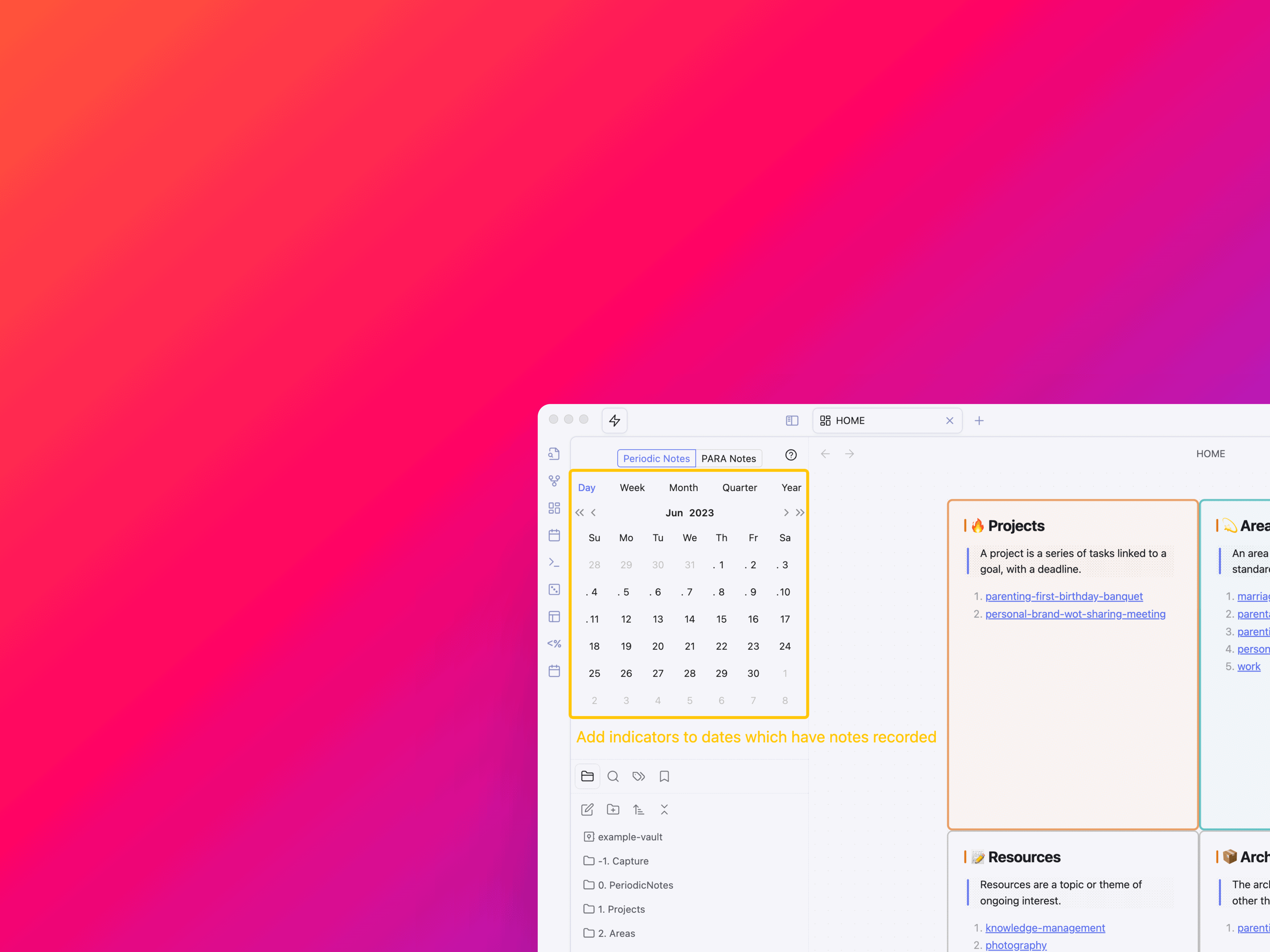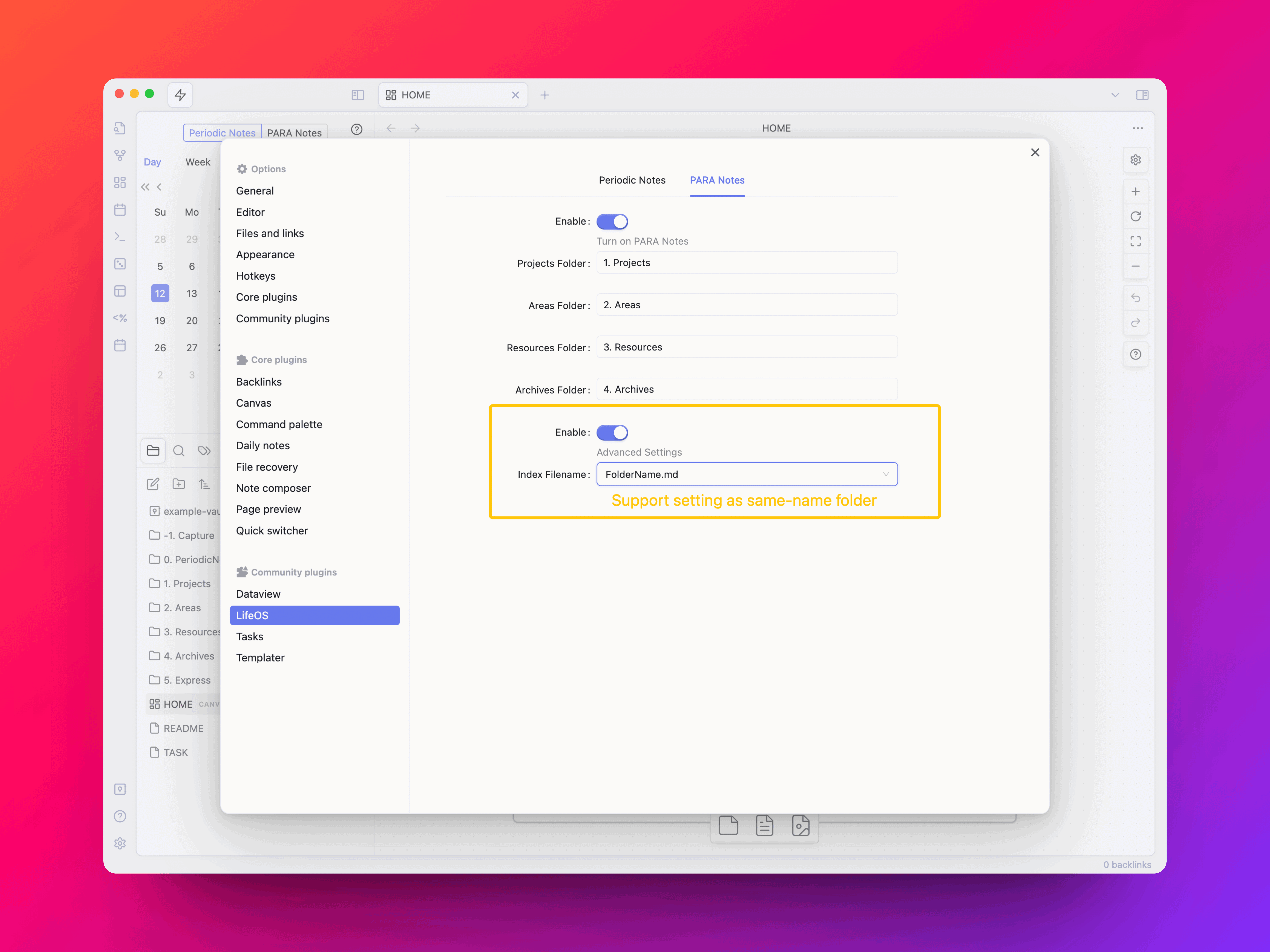 - PARA index file can be matched as a folder of the same name, which is convenient to work with the folder notes plugin