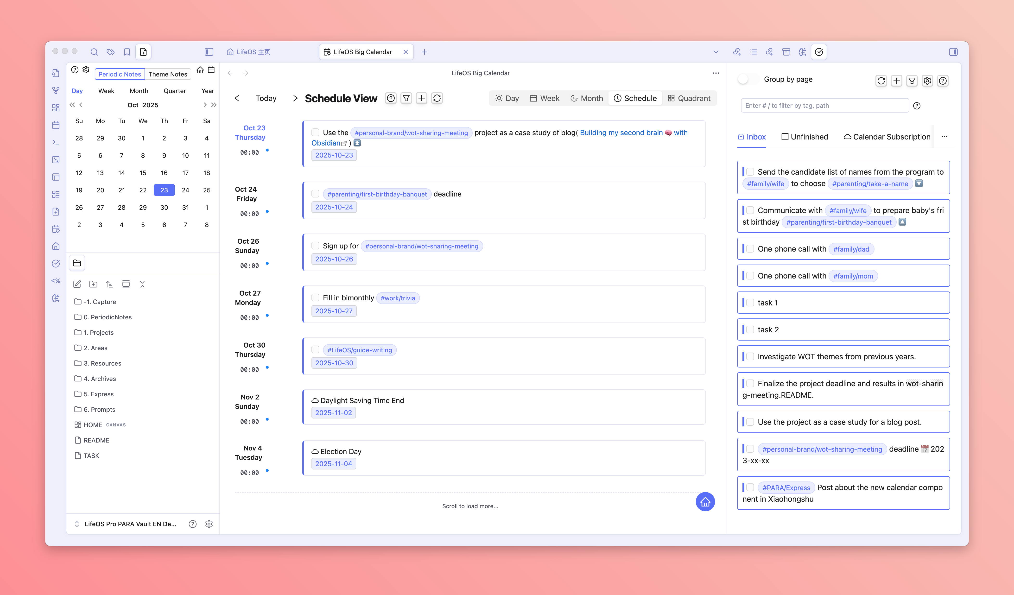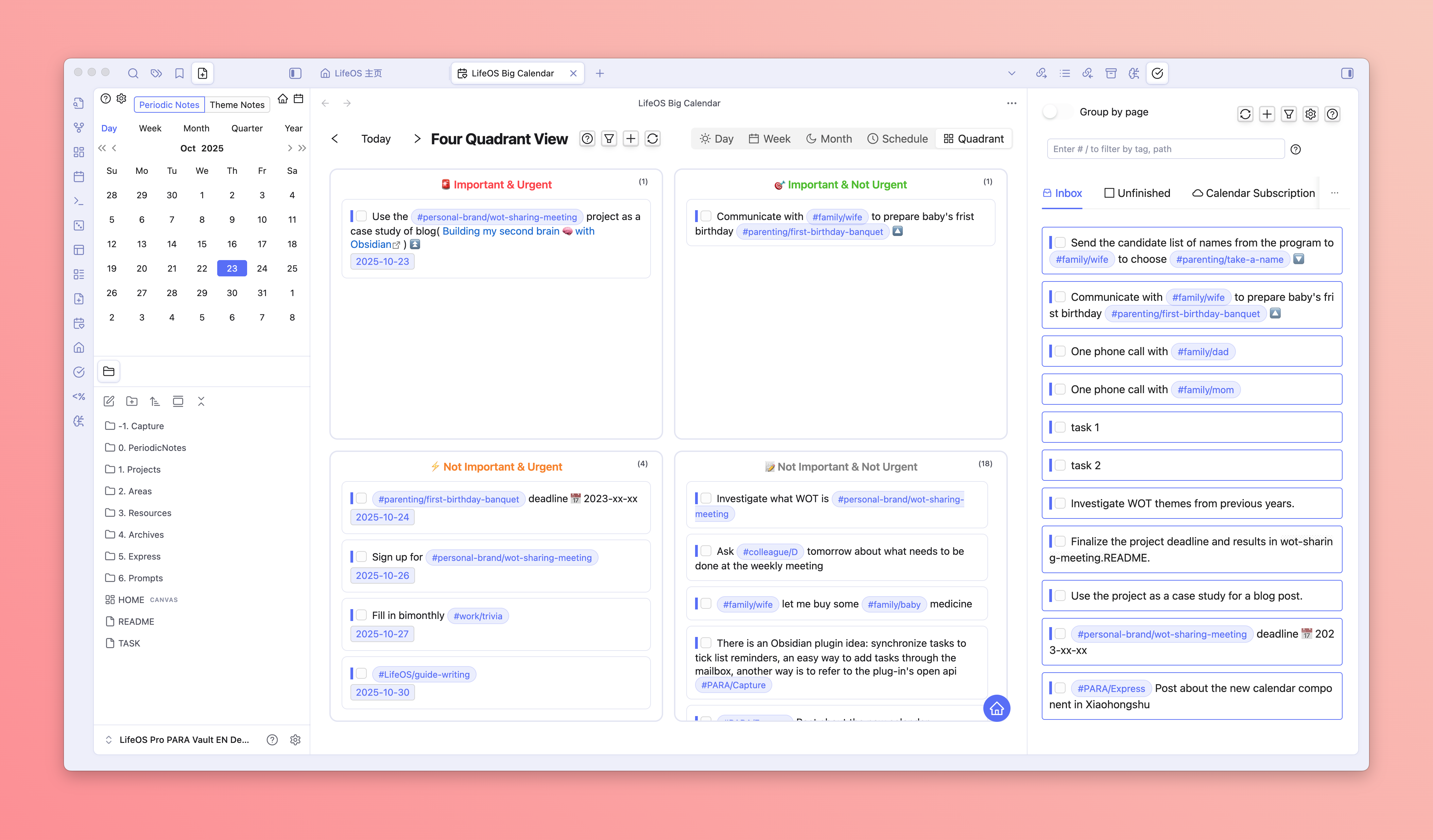 Sidebar task management, also supports dragging to the big calendar to plan your schedule!