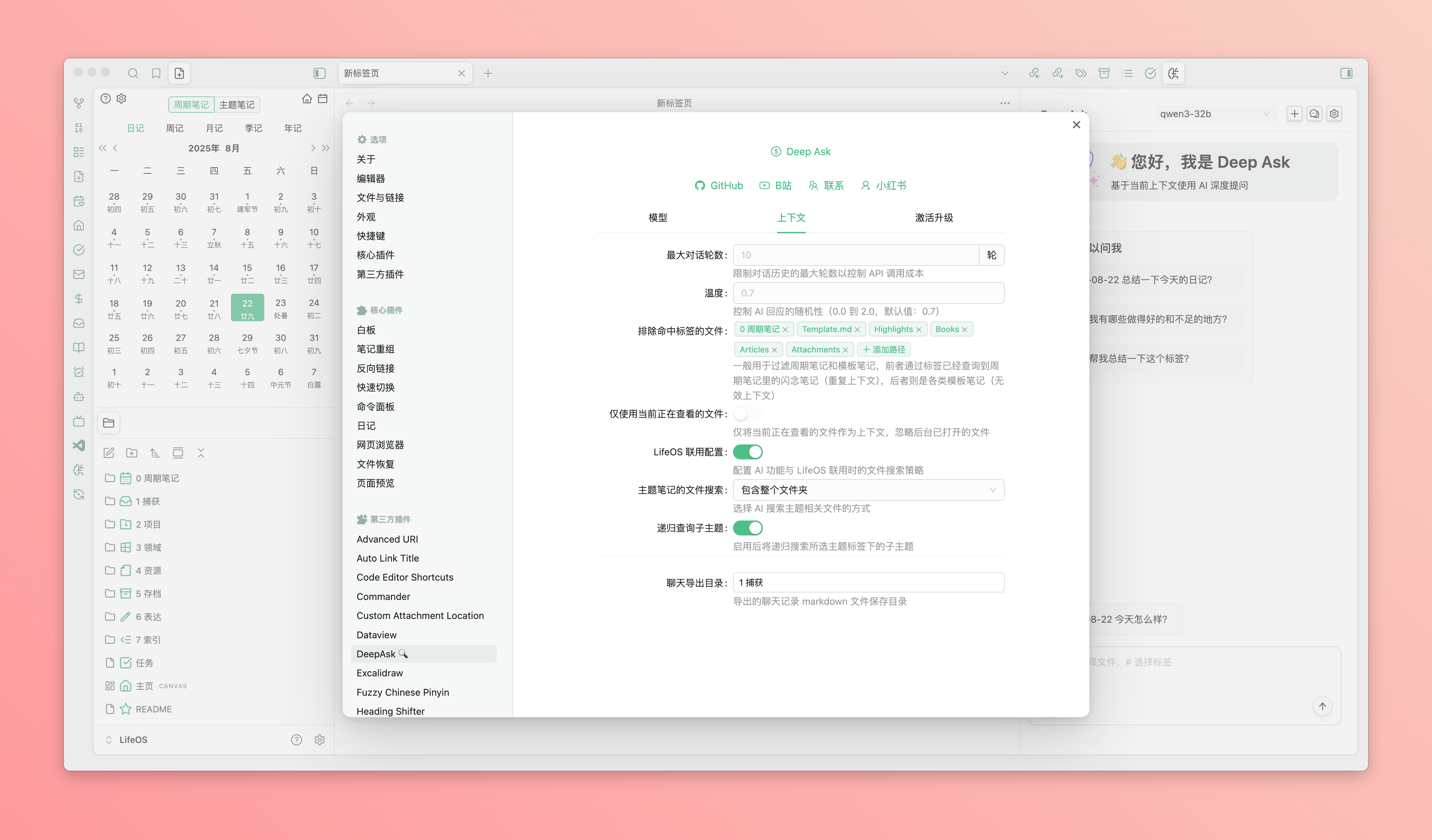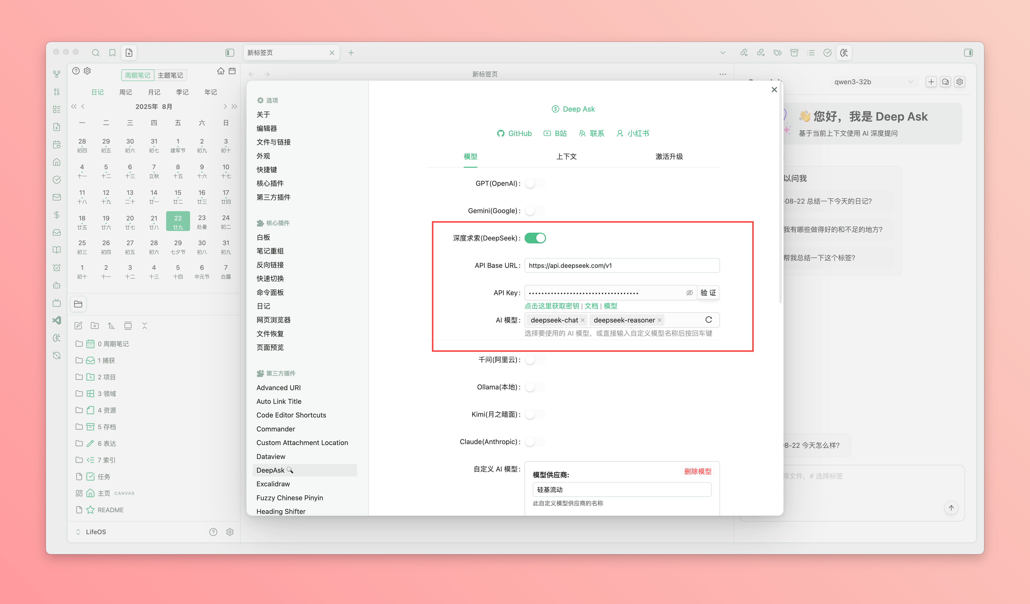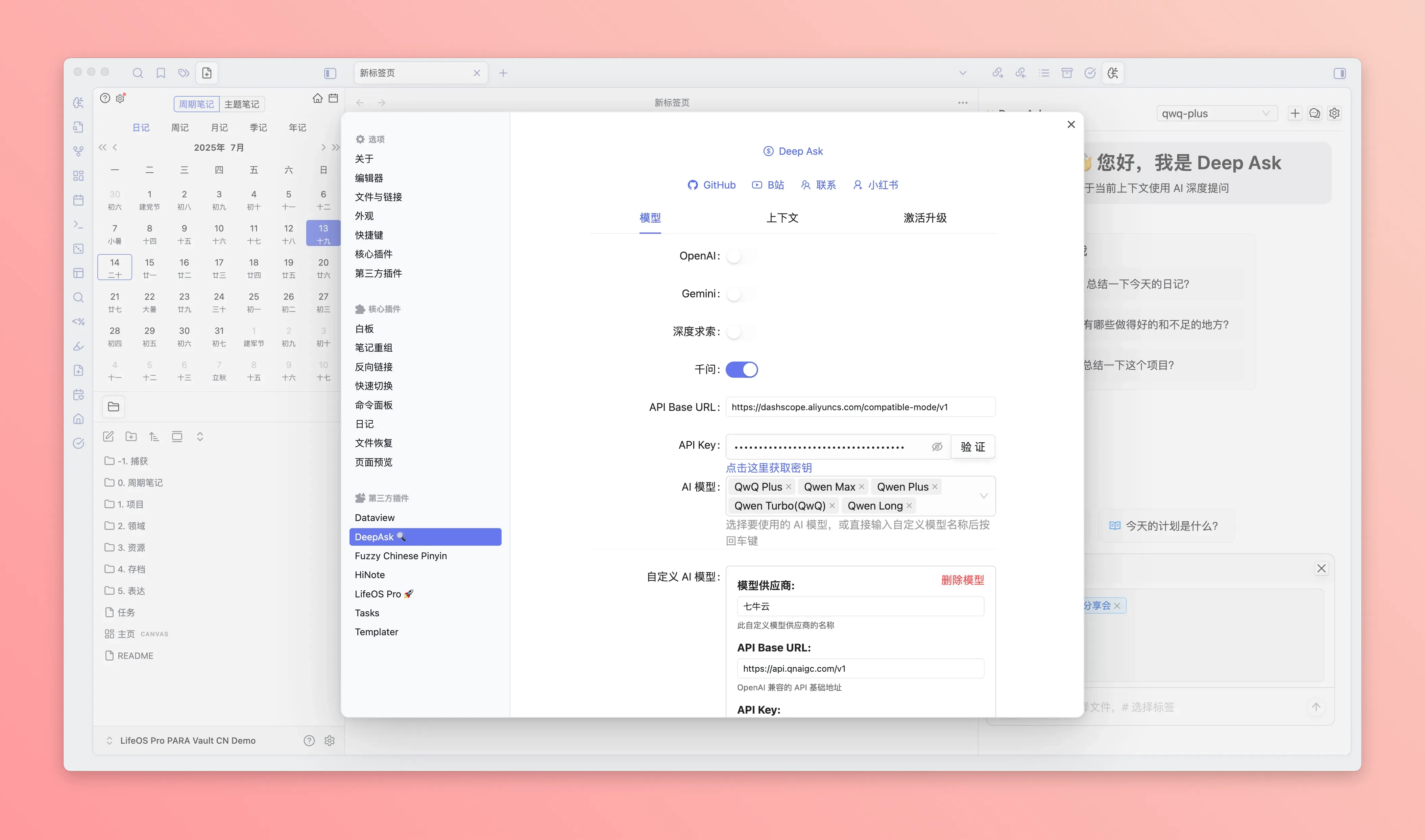 Deep Ask 是一个强大的 Obsidian AI 聊天插件,旨在为您的知识管理带来智能化体验。通过集成多种 AI 模型,Deep Ask 能够理解您的笔记内容,提供智能问答、内容生成和知识检索等功能。