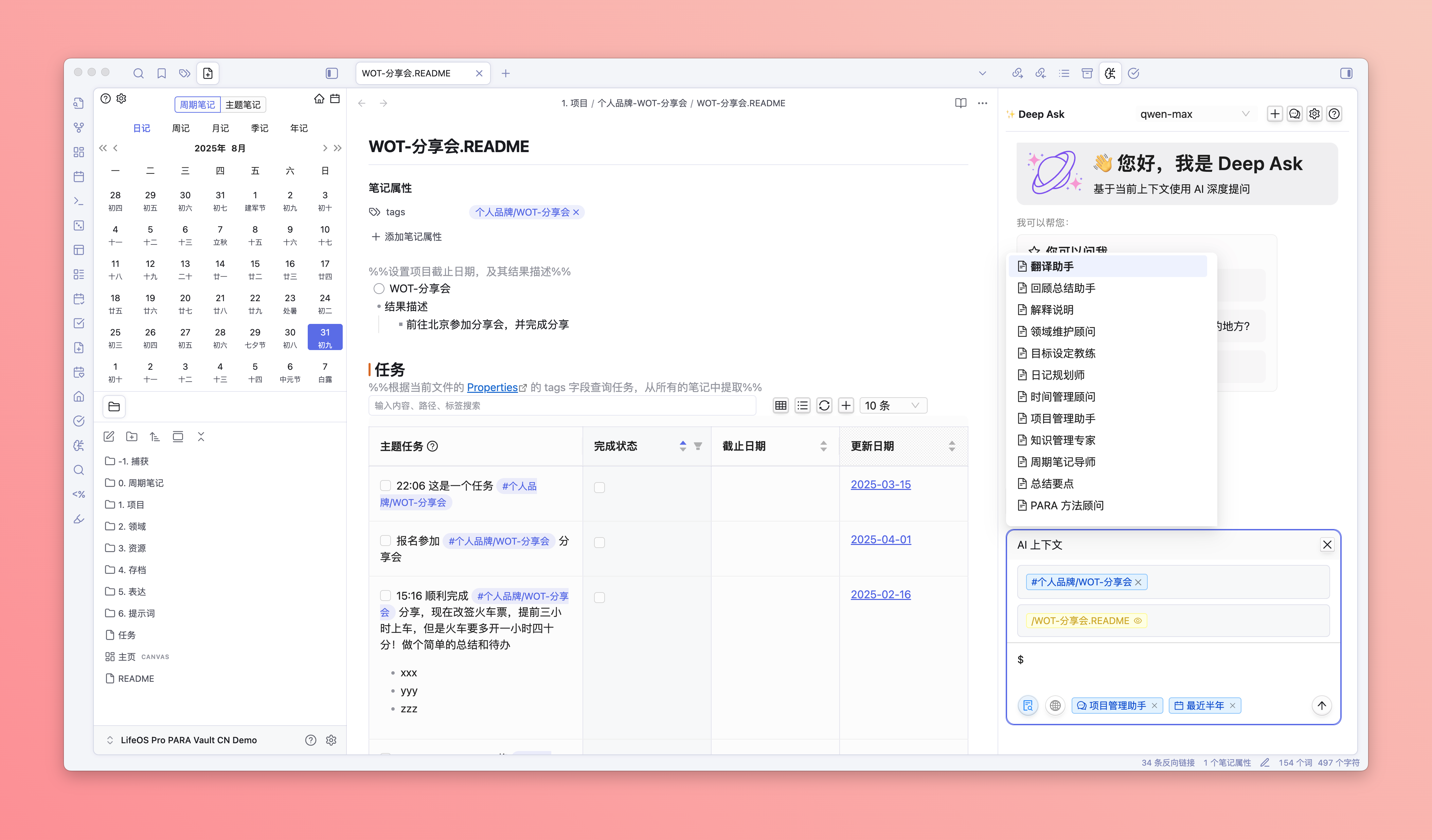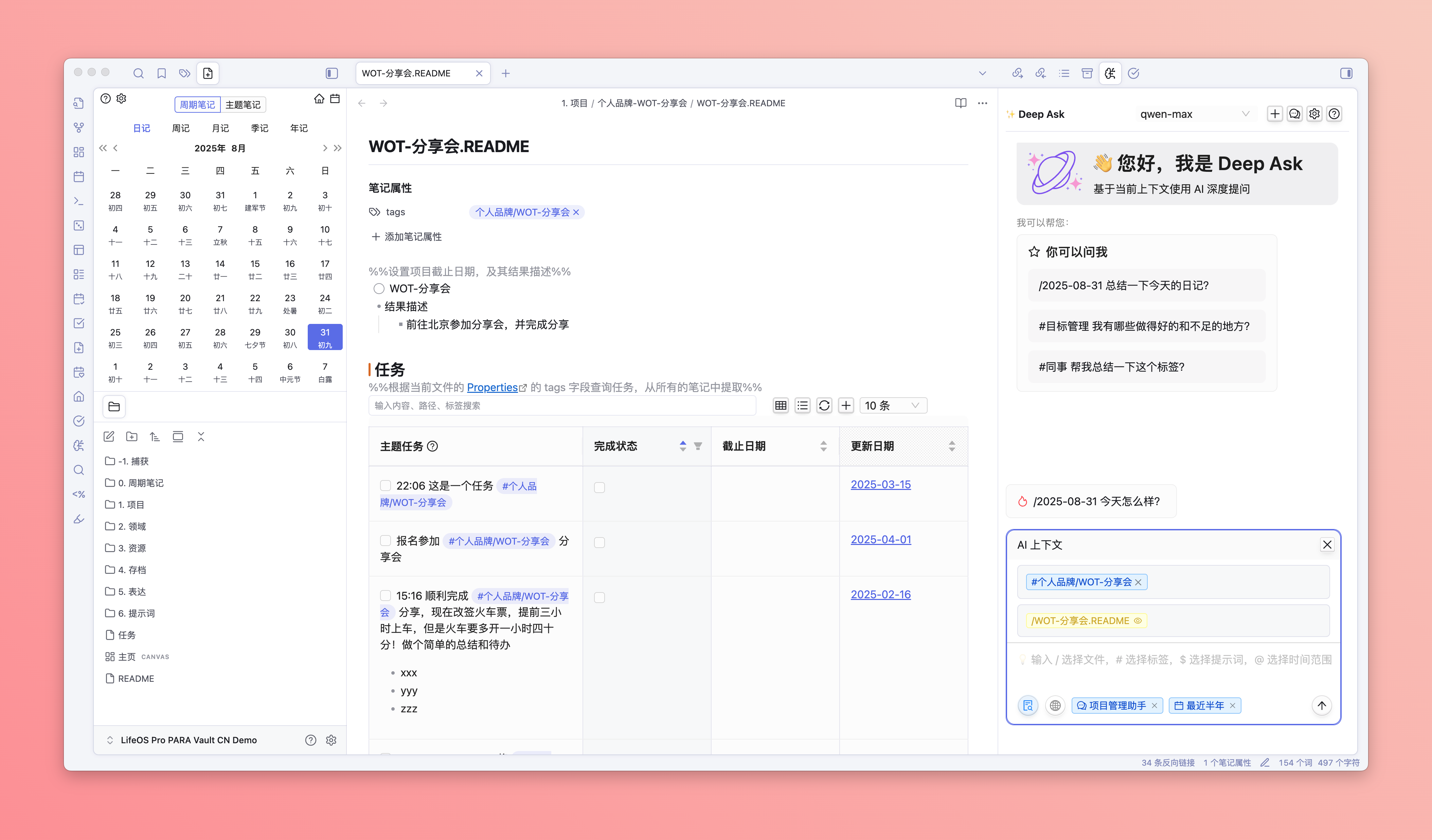 - DeepAsk 会自动搜索整个仓库下,包含该标签的任务、闪念笔记、文件等记录