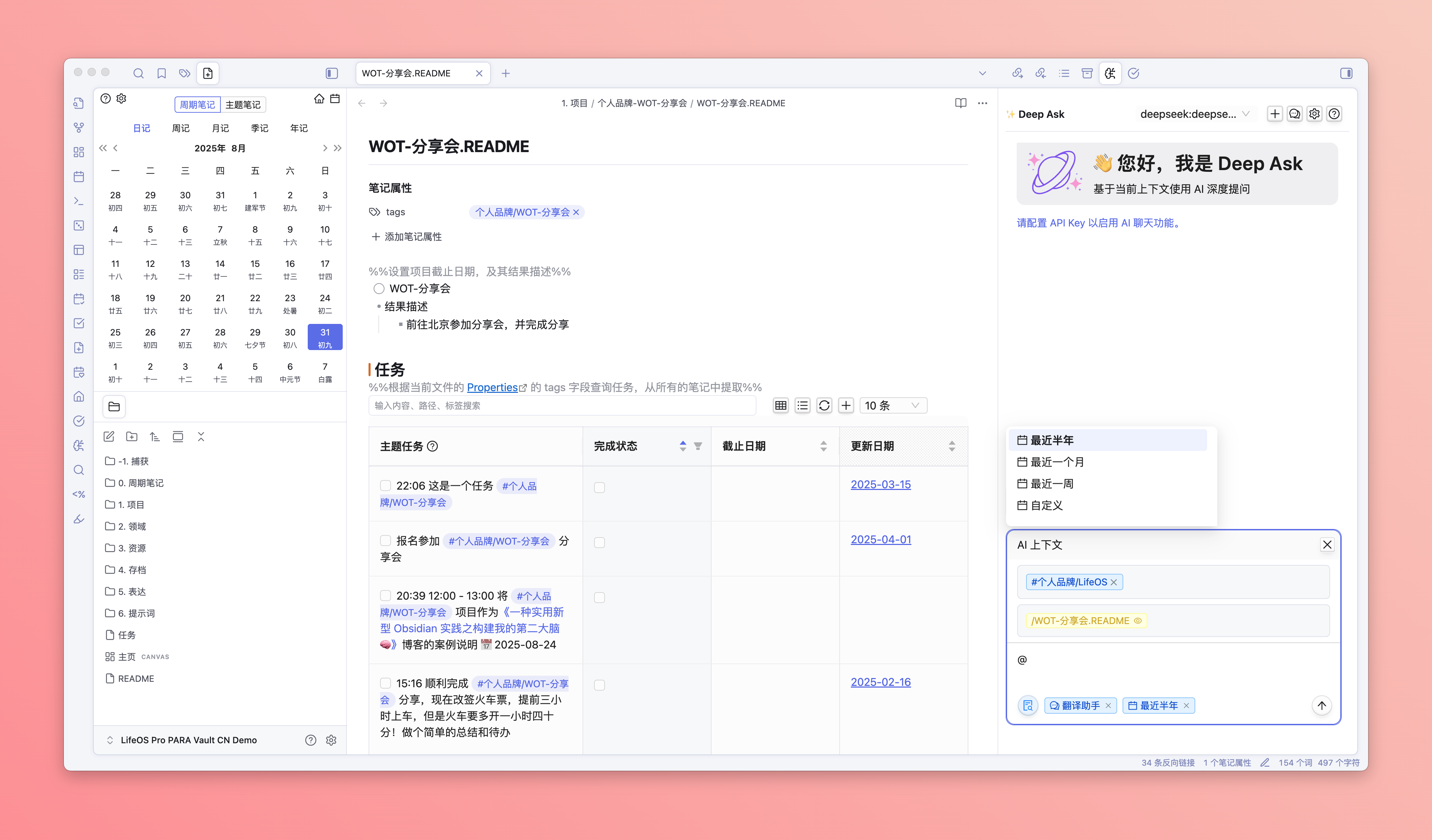- DeepAsk 会自动将匹配的上下文(文件、标签)都限定到指定的时间范围