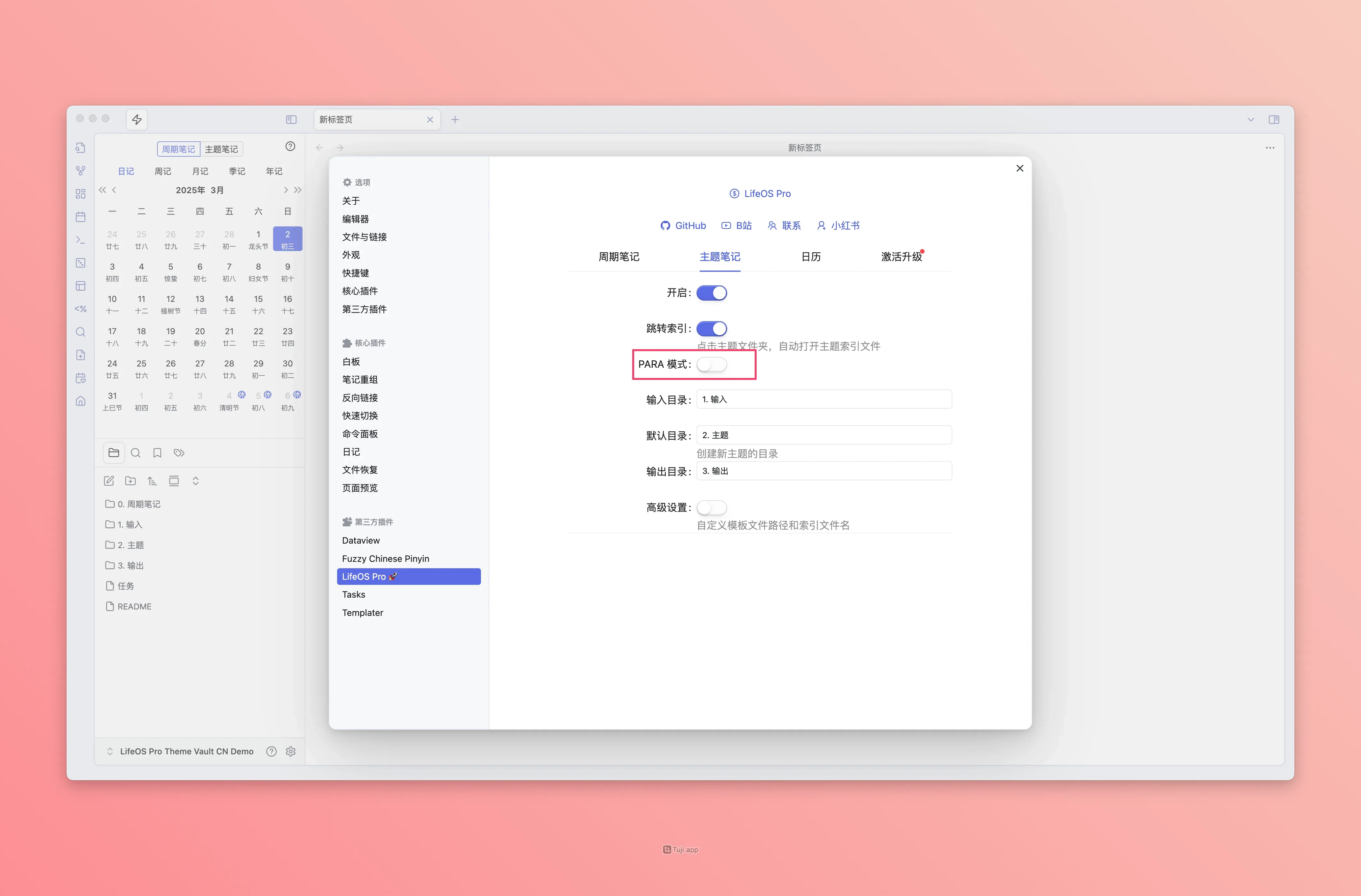通过关闭 PARA 模式,或者直接基于『主题模式的示例模板』进行改造!