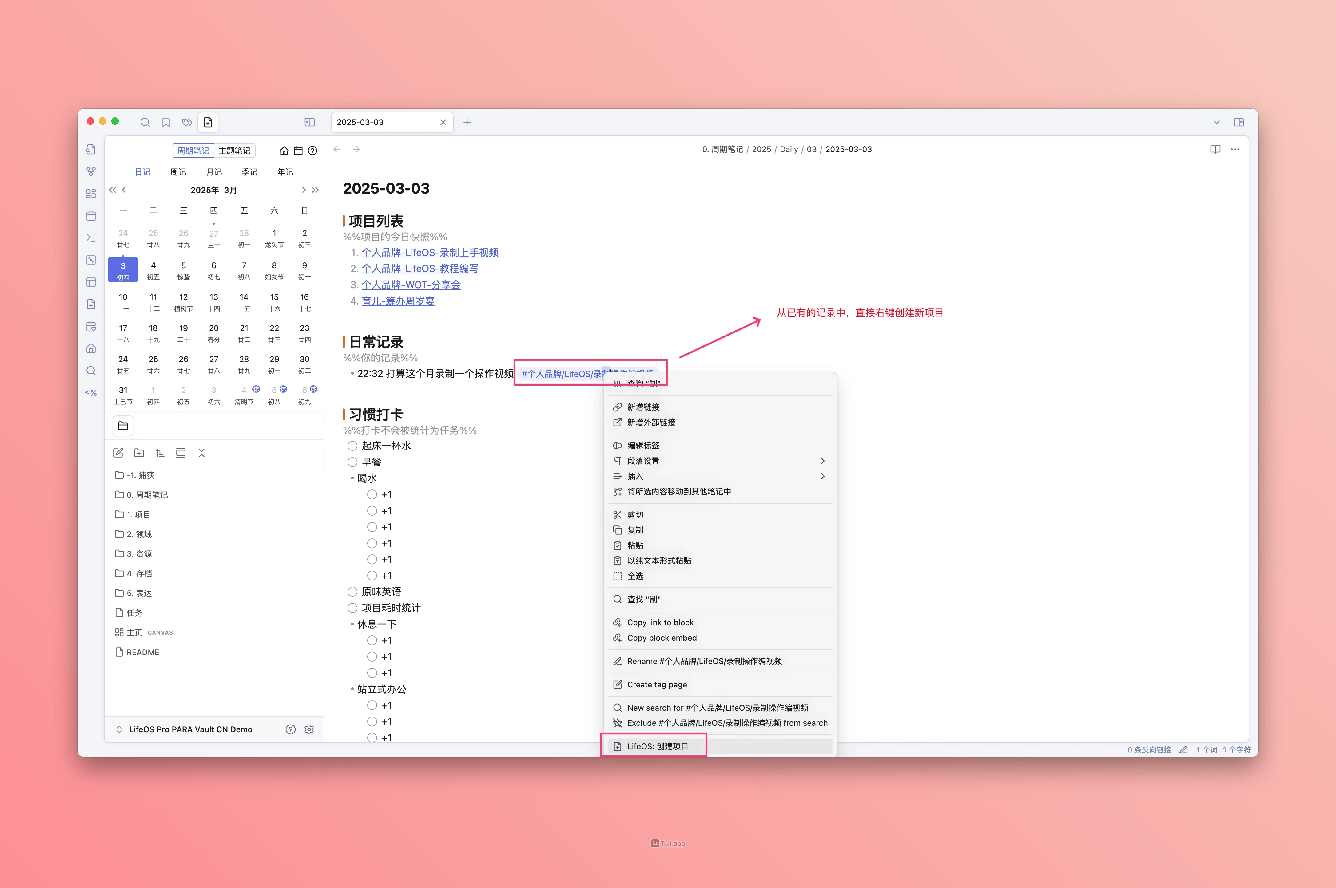 右键主题文件夹,都能让该文件夹自由地流转于『项目』、『领域』、『资源』、『存档』目录,它们都是主题!