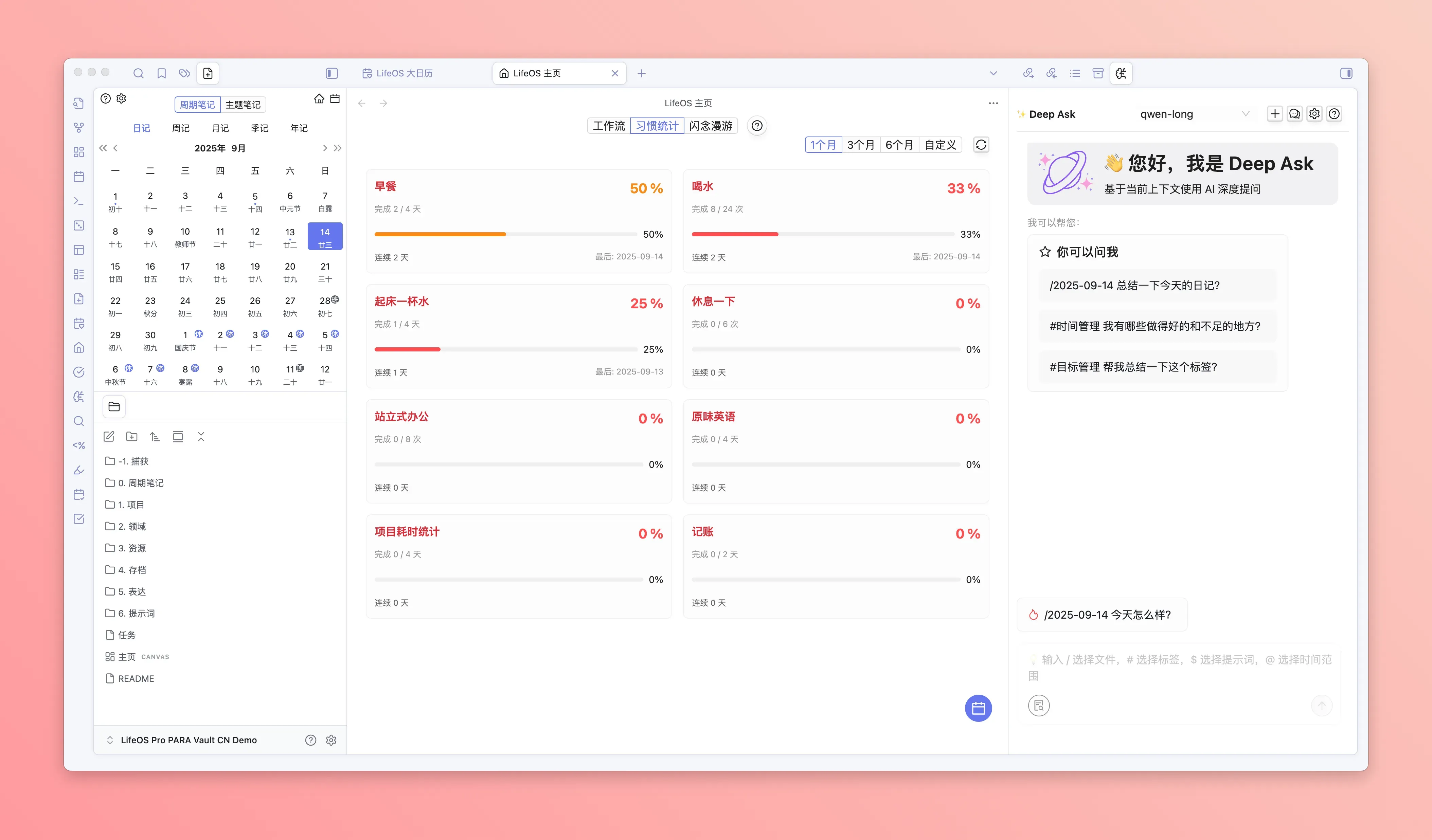 不只记录,更是分析,统计日记中习惯模块的整体完成情况,科学地了解你的习惯养成周期