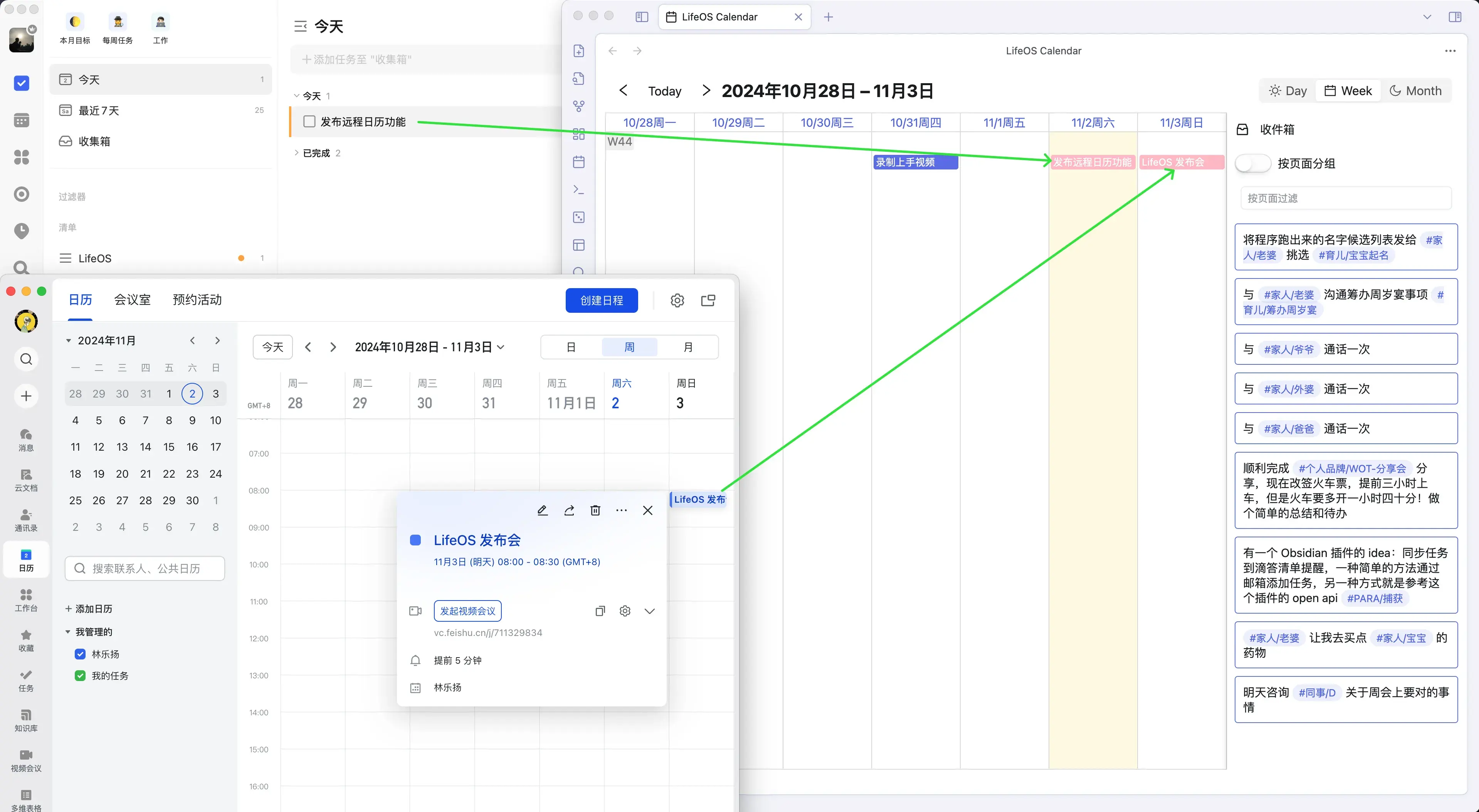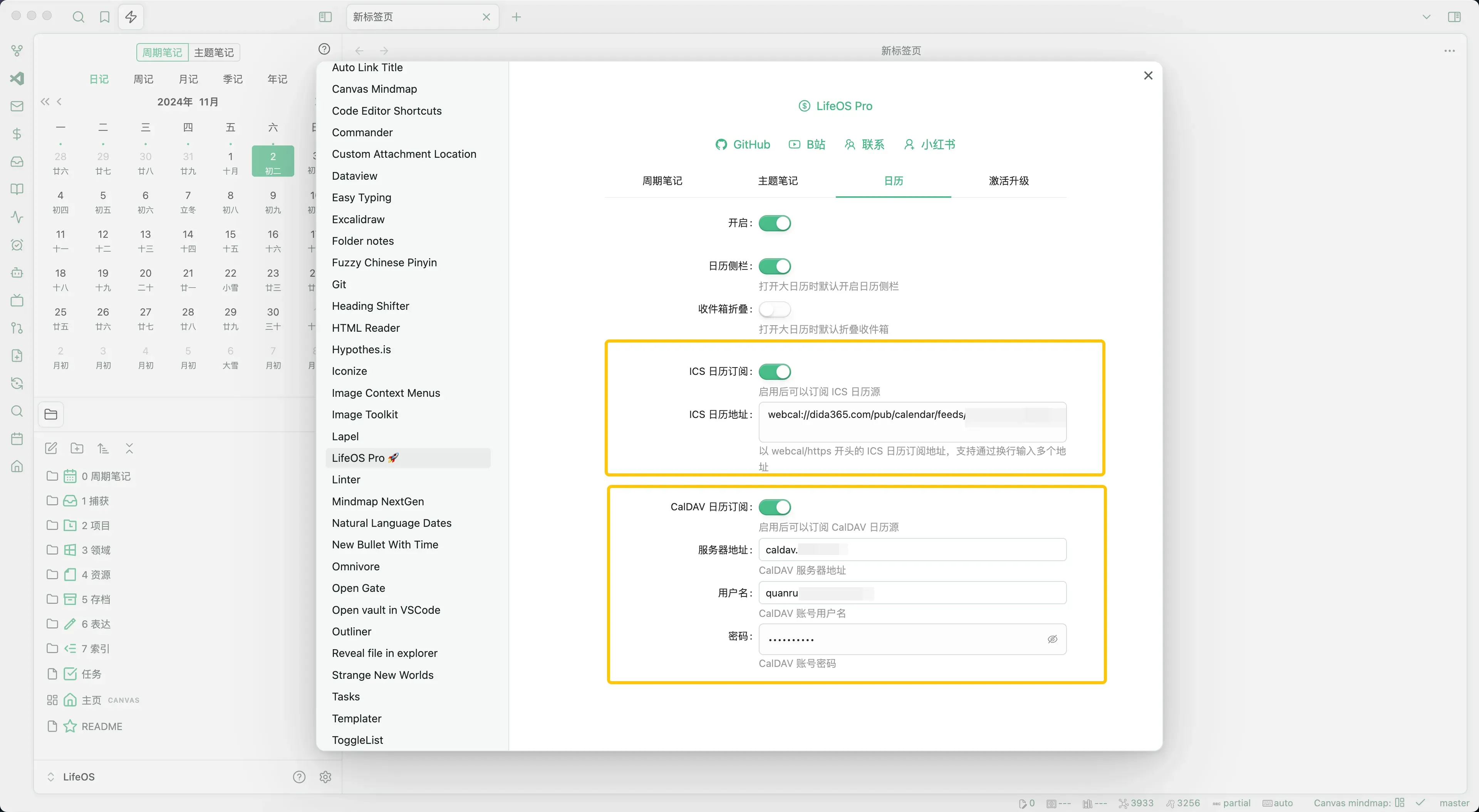 支持订阅 ics 和 Caldav 协议的远程日历,比如滴答清单和飞书日历,让你所有的日历数据集中管理,方便查看和规划,订阅方式请前往『日程订阅』查看。