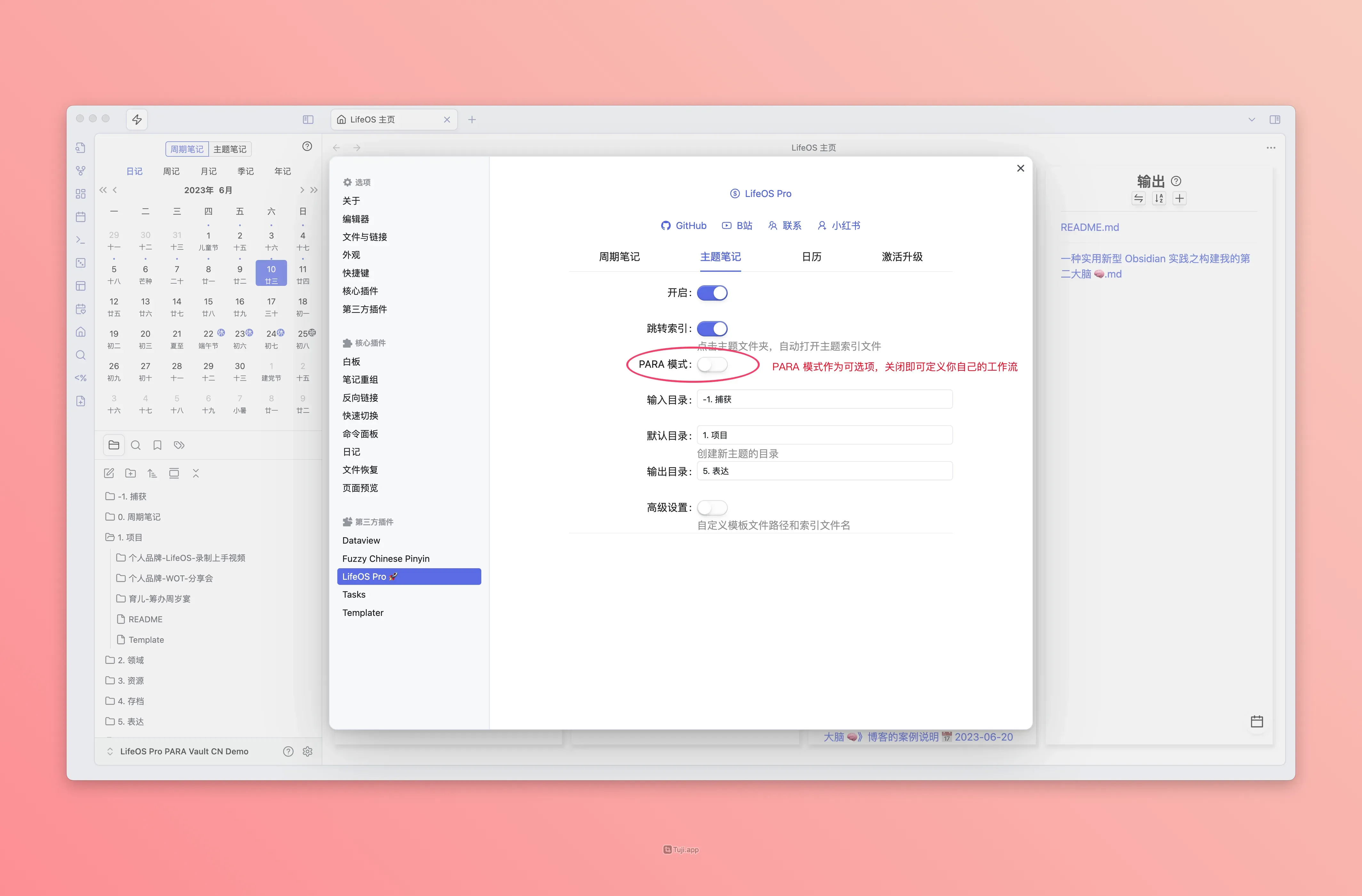 PARA 笔记升级为主题笔记,并增加了开关选项,大大降低了新手的上手门槛。用户只需关注输入、输出和主题,轻松录入、整理和使用笔记。